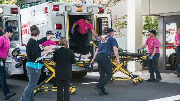 当局出动了6架直升机将伤者送往仁爱医学中心、尤金市圣心总医院等医疗机构。