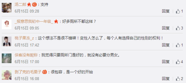 不过,这里毕竟不是加州是北京,不少网友对新生事物“性别友善厕所”表示质疑,“既然设施细节与普通厕所相差无几,打出这样标识无异于给‘跨性别’人群”贴标签,从而加剧身份歧视。”也有相当一部分的网友们担心现实生活中和异性或者跨性别者同用公厕,可能会引起尴尬不安、隐私泄露隐患、侵犯儿童和女性犯罪率上升等问题。