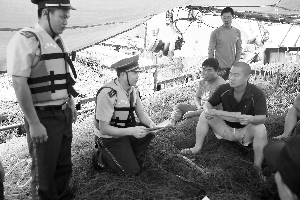 边防官兵面对面思想疏导留守观望的渔民群众。