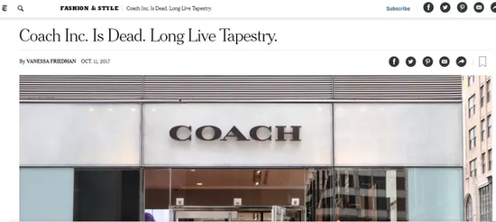 10月30日,Coach公司正式宣布更名为Tapestry,中文意为“挂毯”(也有花毡、绣帷之意)。一时间美国主流媒体纷纷慨叹,这个76年历史的纽约老店,难道是要“自暴自弃”了吗?而消费者和投资者们也对这次改名恶评如潮,Coach股价也在宣布改名当天下跌3.2%。