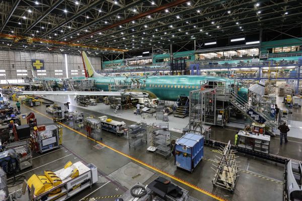 资料图片:波音埃弗里特工厂737单通道飞机生产线(2014年9月26日摄)。新华社记者 张玉薇 摄