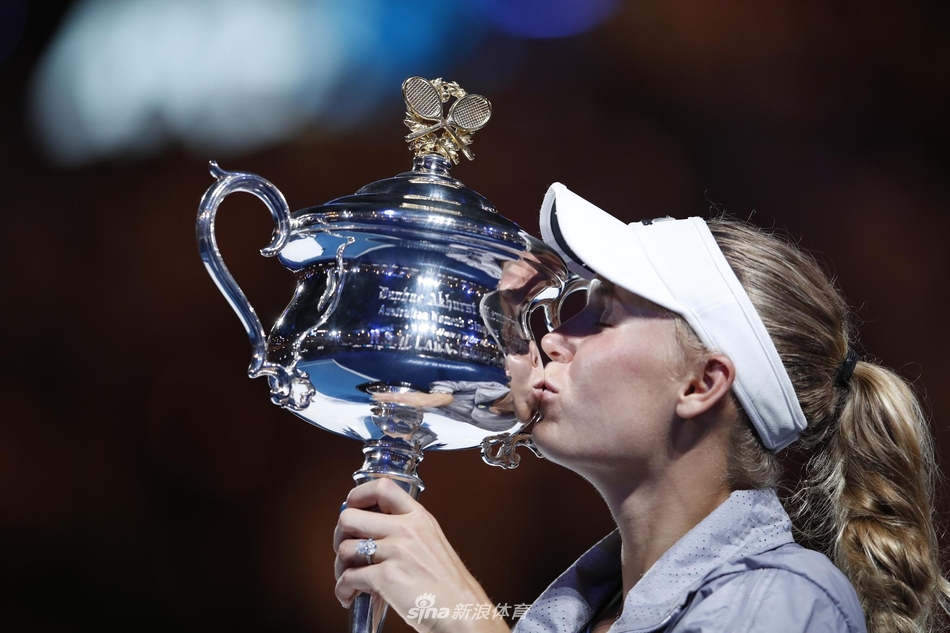 2018年1月27日,2018年澳大利亚网球公开赛,沃兹尼亚奇2-1战胜哈勒普首夺澳网冠军,同时重返世界第一。新浪体育 李欣/摄(发自墨尔本)