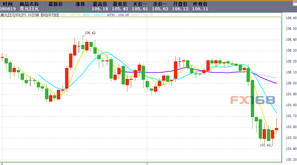 美元/日元则出现“坠崖式下跌”,最低一度触及105.43。