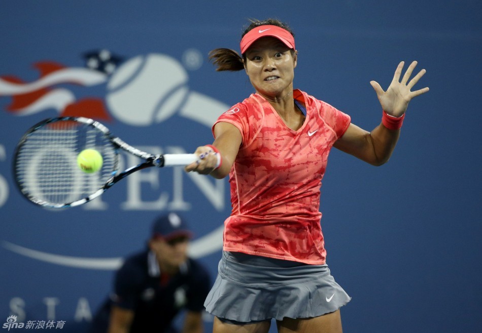 李娜大力击球 (图片来自新浪体育)