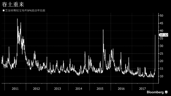 新浪美股讯 北京时间6日彭博称,随着美股延续上周的跌势,芝加哥期权交易所(CBOE)波动率指数(VIX)周一触及了2015年8月以来的最高水平,创下史上最大升幅。